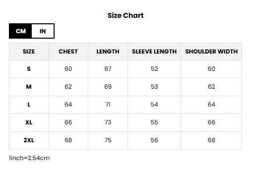HOODIE SIZE CHART: