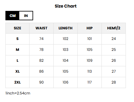 SWEATS SIZE CHART: